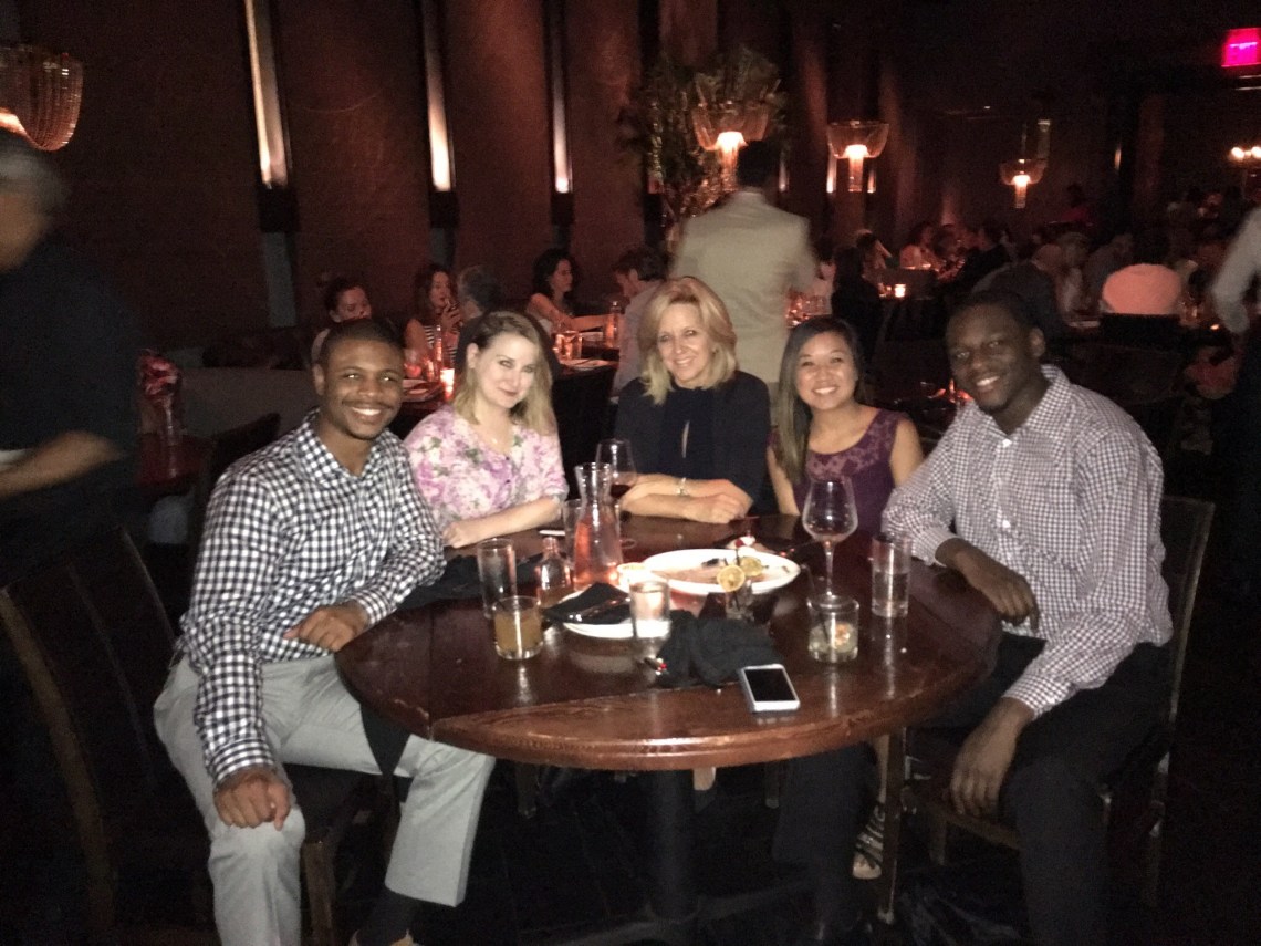 Okay well really should get back to work soon. Enjoy this pic of my training class! From left to right: Chad from LA, CareyAnn from Miami, Liz VP Sales/Training & Development, myself, and Jarred from Washington DC. This was taken at our celebration dinner at a nice restaurant called Beauty and Essex after finishing the first half of the program, the training portion. The last portion was being on the floor shadowing the sales teams. At the end of the 6 months we were placed.