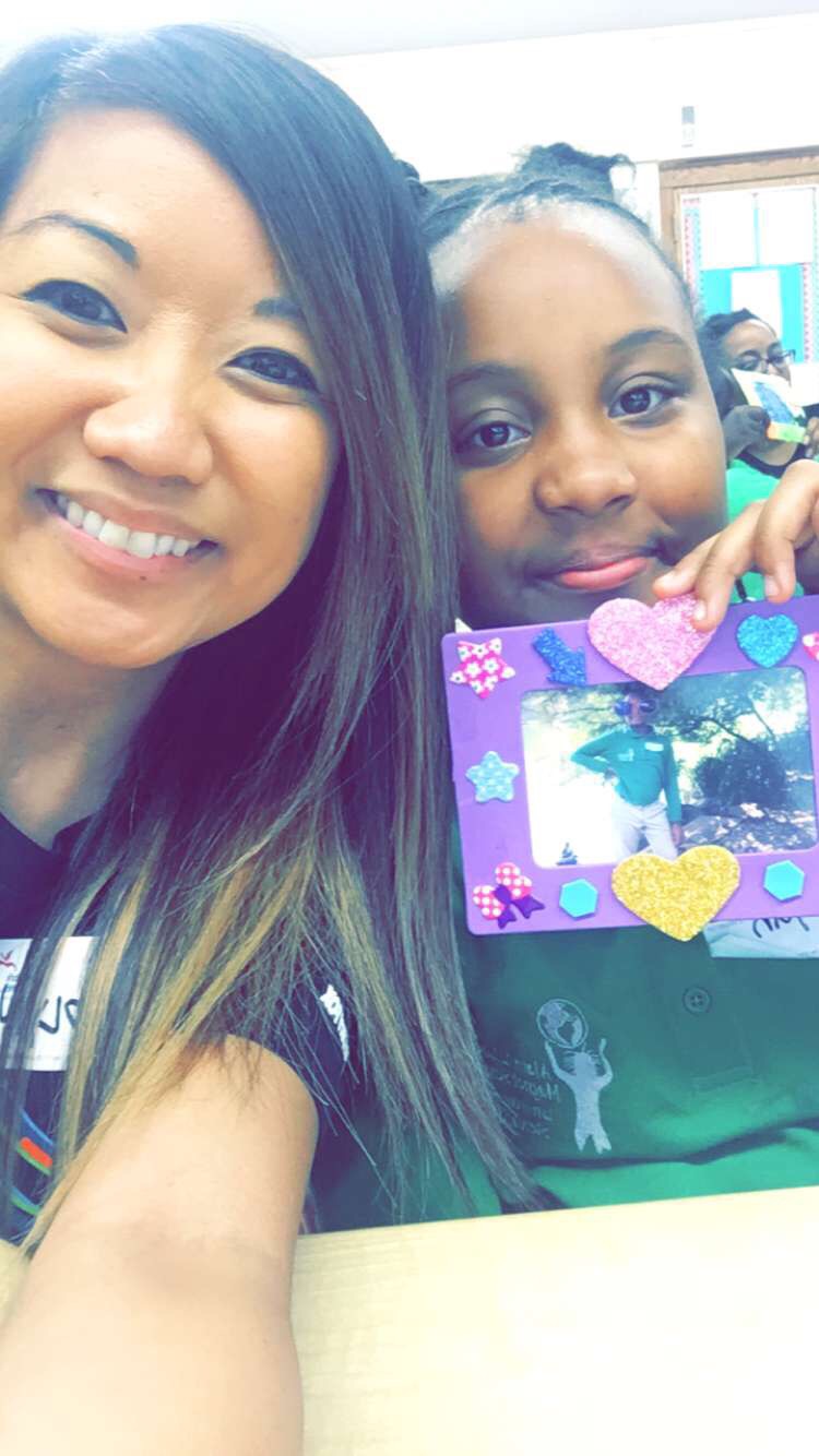 Each volunteer partnered with a student, and I partnered with Siniyah. She was so sweet. I learned that she was 10 years old, only child, lives a block away from the school and goes to school by herself every morning. She likes to bring lunch to school, bringing either a sandwich or Lunchables. She hella brought me back to my childhood. I loved Lunchables! Also her birthday is next week on the 12th and said she was going to a water park the weekend after. On the day of her birthday she was going to come to school not wearing uniform. The students have a green uniform, but she said they are given free-dress day coupons and she was going to use one on her birthday.