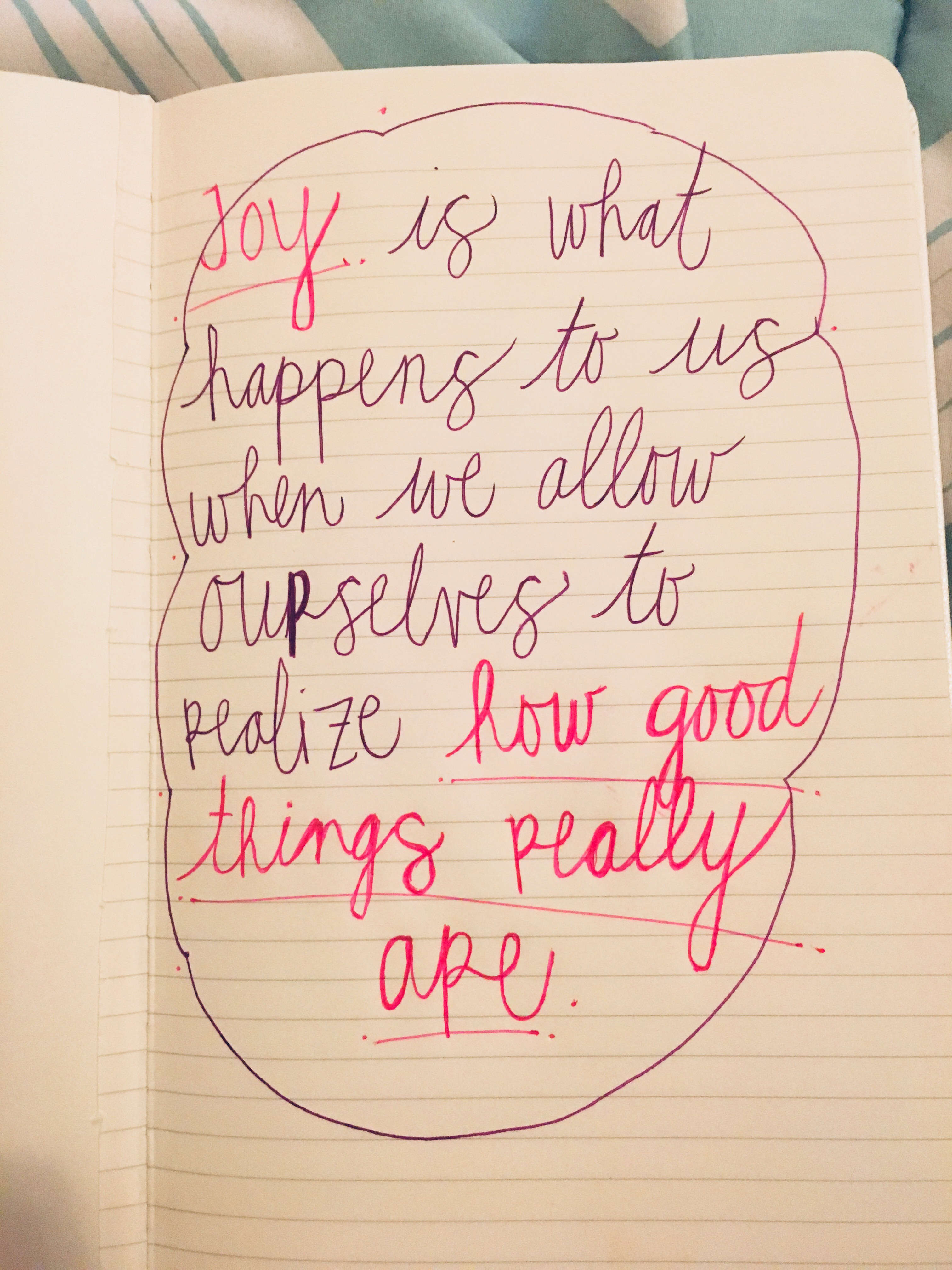 While looking through notes in my phone I found this quote, and thought it would be a good first quote to write. I tend to get homesick, and also overthink sometimes that I should have gone another route in life, but this quote reminds me to be thankful for my path. I’m also a big believer that everything happens for a reason, and so this reminds me to stay calm and that everything will be okay.