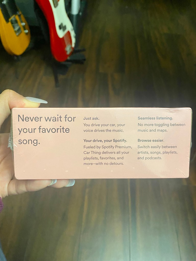 To command it, I say “Hey Spotify” and then give a command just like Alexa/Siri. I could say, “Hey Spotify, play this album/track” or “Hey Spotify, play next track” and so on. I really like it because there have been times that I was listening to a playlist, but then got the craving to listen to a song that’s not on the playlist, so then had to grab my phone while driving to search up the song and that’s not safe lol. But now I could just ask the Spotify Car Thing to go to the track and all set. Yesterday I just drove to the store and asked it to play a bunch of tracks just for fun lol. So anyone who rides with me now, feel free to talk to it 💚